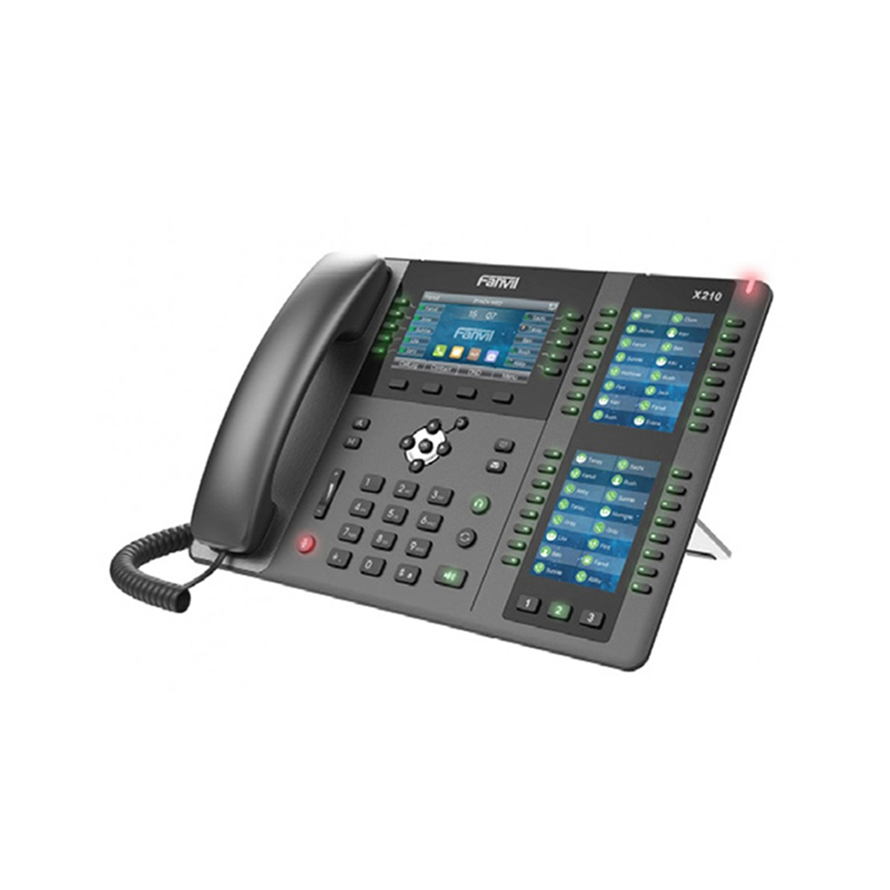 To Fanvil X210 είναι ένα υψηλής τεχνολογίας IP τηλέφωνο για χρήστες που χρειάζονται πρόσβαση σε ευέλικτες και προηγμένες λειτουργίες και χειρίζονται μεγάλο αριθμό κλήσεων στην καθημερινή τους εργασία. Διαθέτει 10 πλήκτρα DSS σε κύρια έγχρωμη οθόνη 4,3″, μέχρι 96 πλήκτρα DSS (32 φυσικά) σε πλευρικές έγχρωμες οθόνες 2 x 3,5″, το X210 έχει μέχρι 106 πλήκτρα προγραμματιζόμενα (DSS, BLF, λειτουργία ταχείας κλήσης κλπ). Διαθέτει επίσης, ενσωματωμένο Bluetooth, δυνατότητα για Wi-Fi συνδεσιμότητα και υποστήριξη EHS. Οι προηγμένες λειτουργίες ολοκληρώνονται με την δυνατότητα υποστήριξης Video Call Resolution 1080p, για σύνδεση με κάμερα IP ή SIP Video Doorphone, προσφέροντας τεράστια παραγωγικότητα. Συμβατή με πλατφόρμες όπως Yeastar, Jabra, Αvaya, Asterisk, Elastix, 3CX, Zycoo, Epygi, Nec, κ.α.