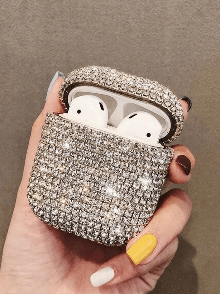 Θήκη διακοσμημένη με στρας συμβατή με AirPods 3, Ασημί
